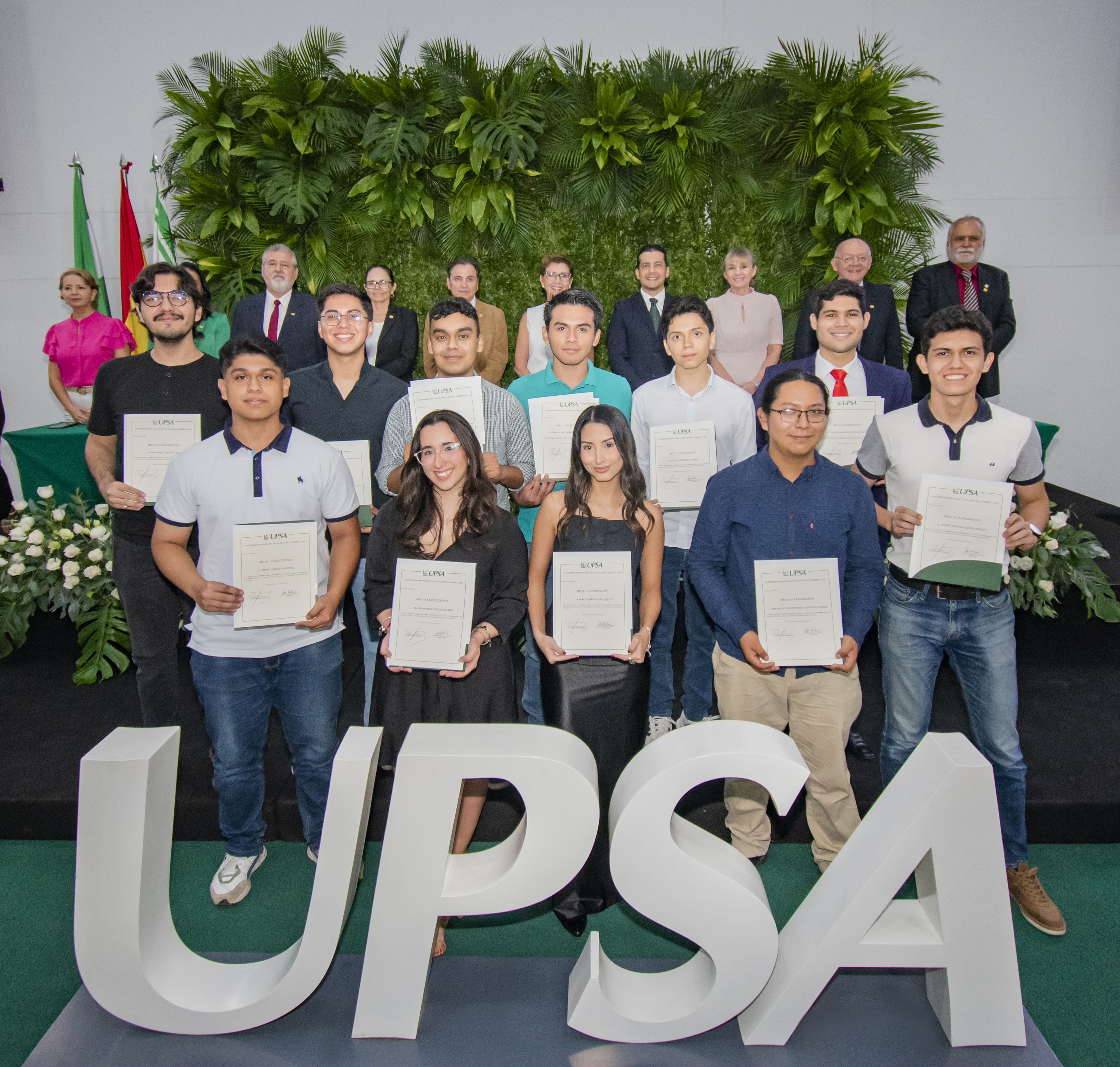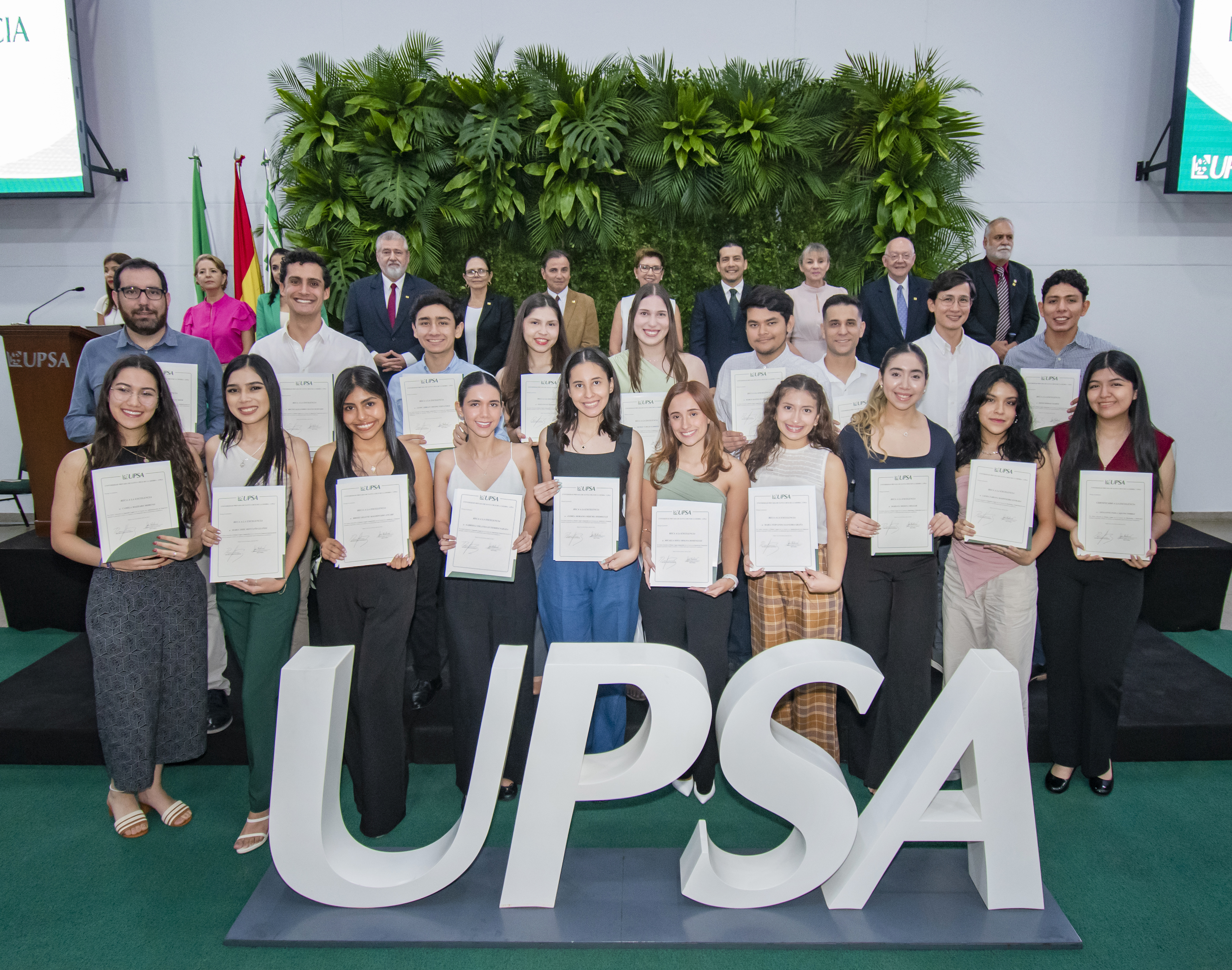 La Universidad Privada de Santa Cruz de la Sierra – UPSA, reconoció el esfuerzo de 57 estudiantes de pregrado y postgrado de esta Universidad, entregándoles la Beca a la Excelencia del semestre 1/2025 por haber obtenido los promedios más altos de aprovechamiento académico, durante un acto realizado el pasado 8 de mayo en el que participaron la Rectora de la UPSA, Lauren Müller de Pacheco, autoridades académicas, Decanos de las cinco Facultades y de la Unidad de Postgrado.