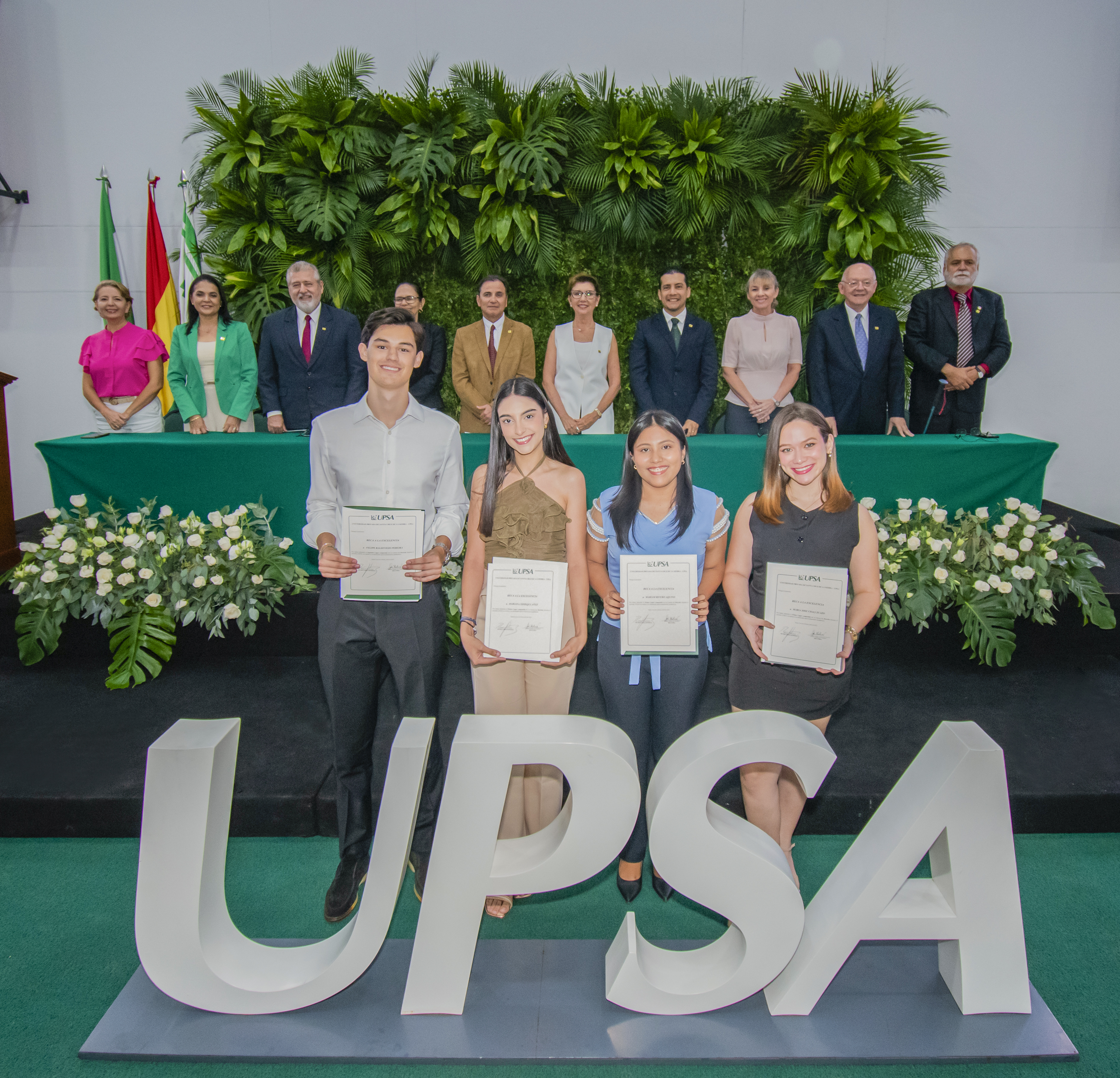 “Esta es la primera carta de presentación cuando envíen sus currículums. Así que las más sinceras felicitaciones y los deseos de que siempre sigan con ese compromiso. La excelencia es algo que debemos perseguir día a día, buscando superarnos permanentemente. A los docentes, también nuestro reconocimiento y nuestras felicitaciones porque aquí están los resultados; y de manera muy especial a los padres de familia, por esa labor que han hecho desde sus hogares y nuestra gratitud por haber confiado en nosotros a que sus hijos se formen en nuestra Universidad”, indicó la Rectora de la UPSA, durante el acto de entrega.